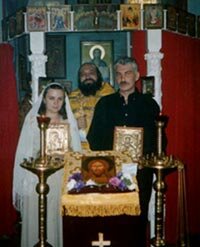 Венчал нас в храме св. новомучеников и исповедников Российских духовник и друг мужа — о. Валериан Головченко (мы с ним на фото). Для нас это знаменательно, потому что более всего в нашей семье мы почитаем новомучеников и исповедников Российских, очень любим и чтим св. страстотерпца Царя Николая. И надеемся, что милостью Божией в России будет восстановлена Монархия.